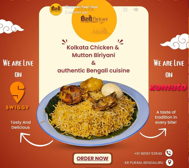Welcome to B2B Biriyani, From Bengal to Bengaluru with love, where authentic flavors of Bengal come alive in the heart of Bengaluru. This unique cloud kitchen captures the essence of Kolkata’s culinary heritage, offering dishes that transport you straight to the streets of Bengal.